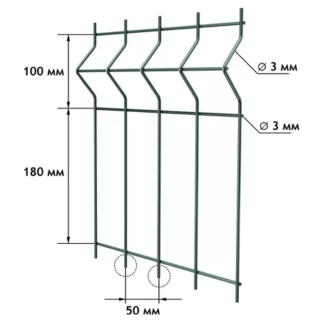- прочность и долговечность — V-образные ребра жесткости и оцинкованная проволока с полимерным покрытием обеспечивают срок службы до 60 лет;